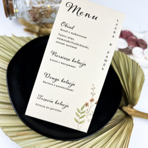 Menu jednokartkowe „Z delikatnymi kwiatami”
