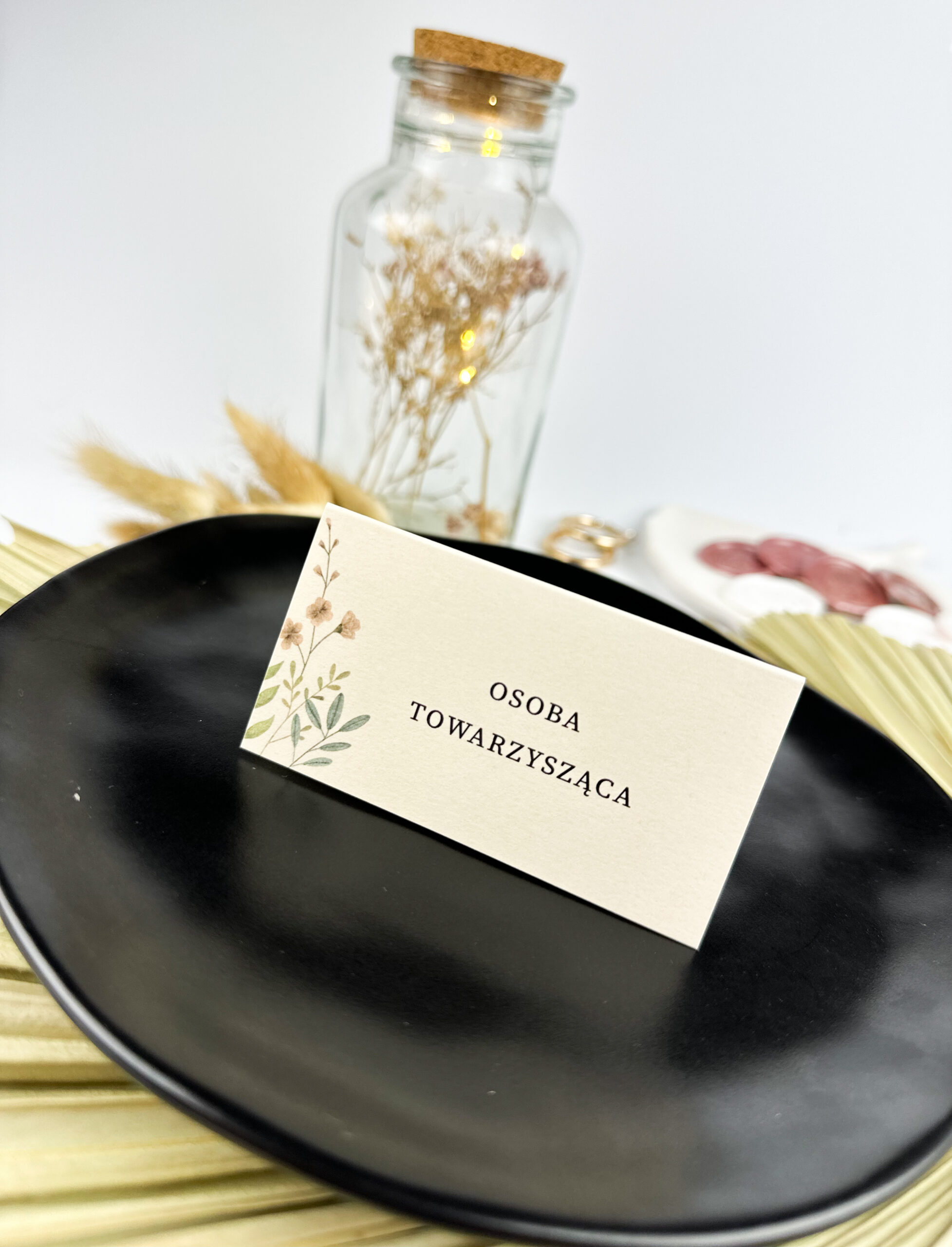 Winietka „Z delikatnymi kwiatami” to elegancki i praktyczny dodatek, który ułatwi organizację Twojego przyjęcia weselnego, dodając jednocześnie odrobinę uroku i stylu. Wykonana z wysokiej jakości beżowego papieru, winietka charakteryzuje się subtelnym, ale niezwykle eleganckim motywem kwiatowym. Delikatne kwiaty zdobiące winietkę dodają jej lekkości i naturalnego piękna, co czyni ją idealnym wyborem zarówno na eleganckie, jak i rustykalne czy boho wesela.