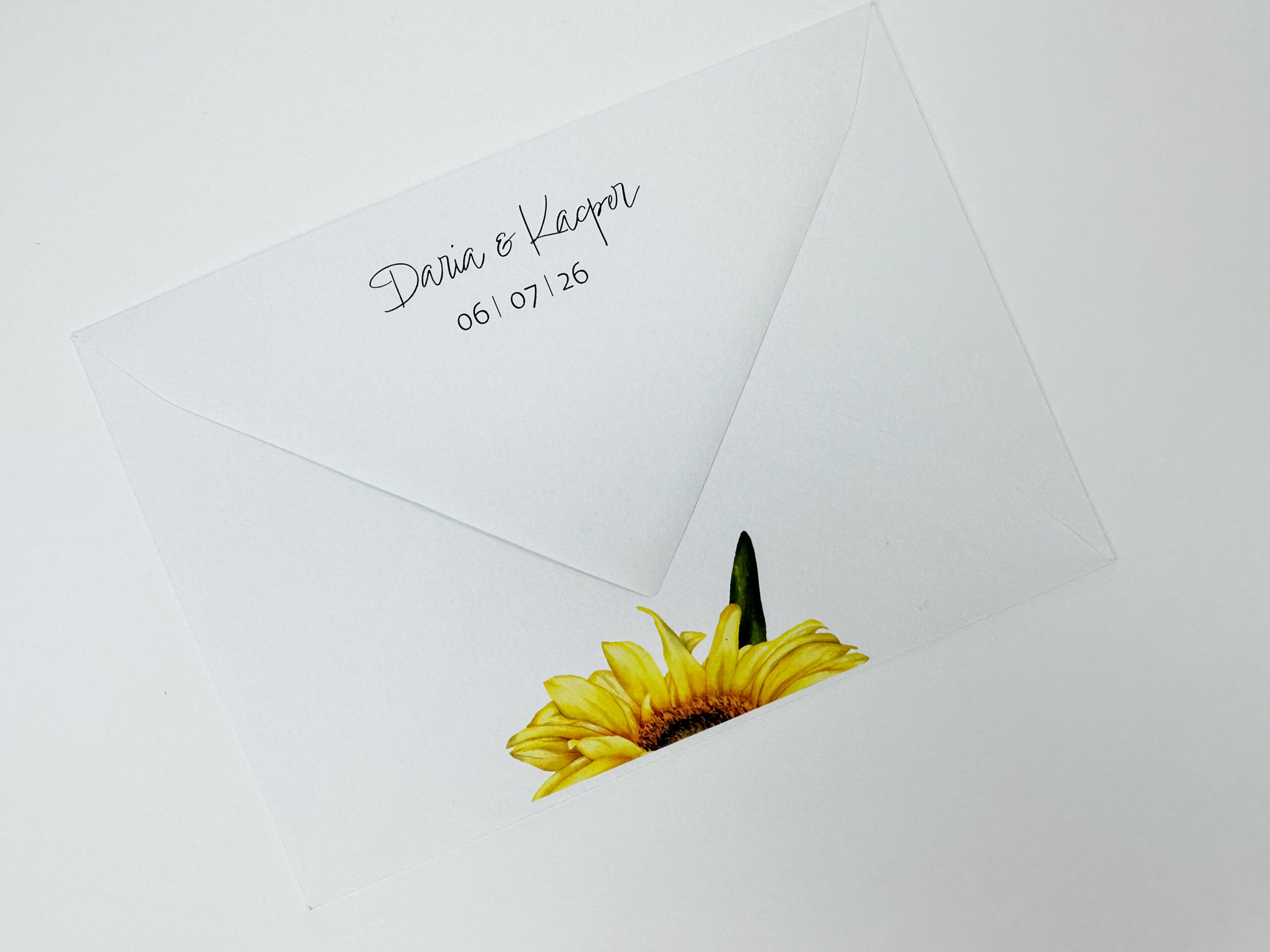 Możliwość dokupienia nadruku pozwala na dodatkowe spersonalizowanie zaproszeń. Idealne dla par, które cenią sobie botaniczne motywy i letnią atmosferę.