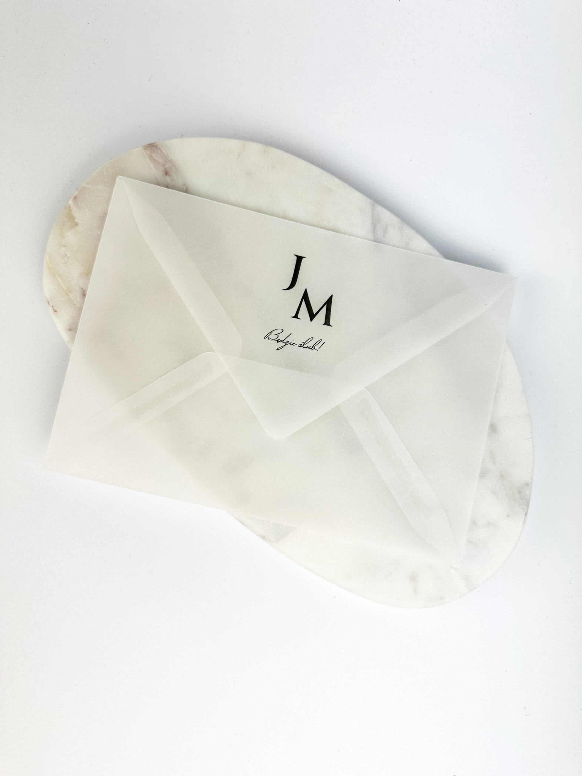 Nasze zaproszenie ślubne eleganckie doskonale komponuje się z różnorodnymi kopertami. Można wybrać klasyczne kolorowe koperty, które dodają zaproszeniu wyjątkowego charakteru, lub zdecydować się na transparentne koperty, które podkreślają nowoczesny design zaproszenia. Dodatkowo, zaproszenie „Biel i beż” idealnie komponuje się z obwolutą z kalki oraz beżową wstążką szyfonową, co dodaje mu dodatkowej elegancji i wyjątkowości.