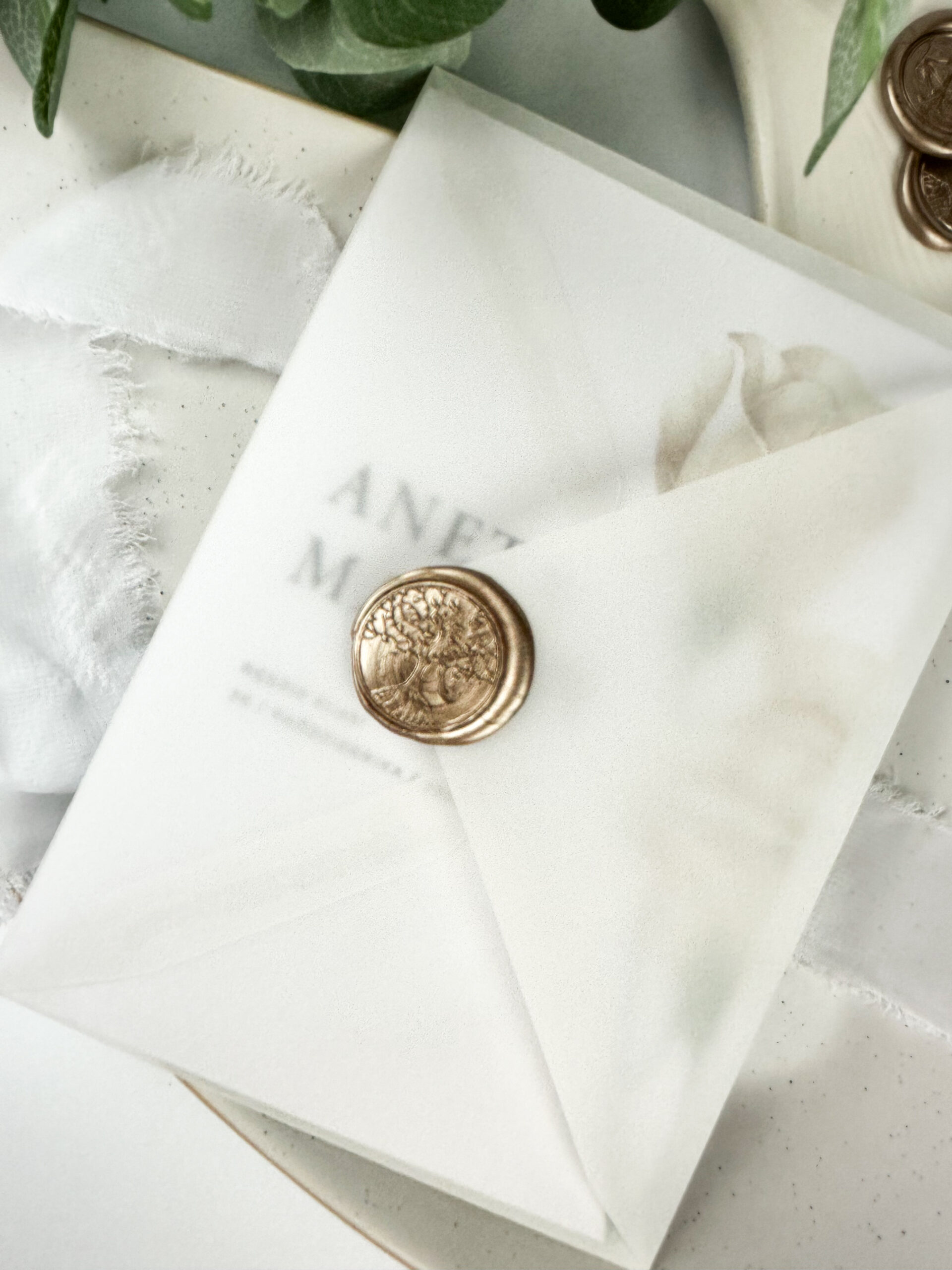 Do zaproszenia możesz dodatkowo dobrać kopertę, obwolutę z kalki, wstążkę szyfonową, lak i piórko. Pięknie wyglądają również nadruki na kopercie. Każda z opcji jest dodatkowo płatna.